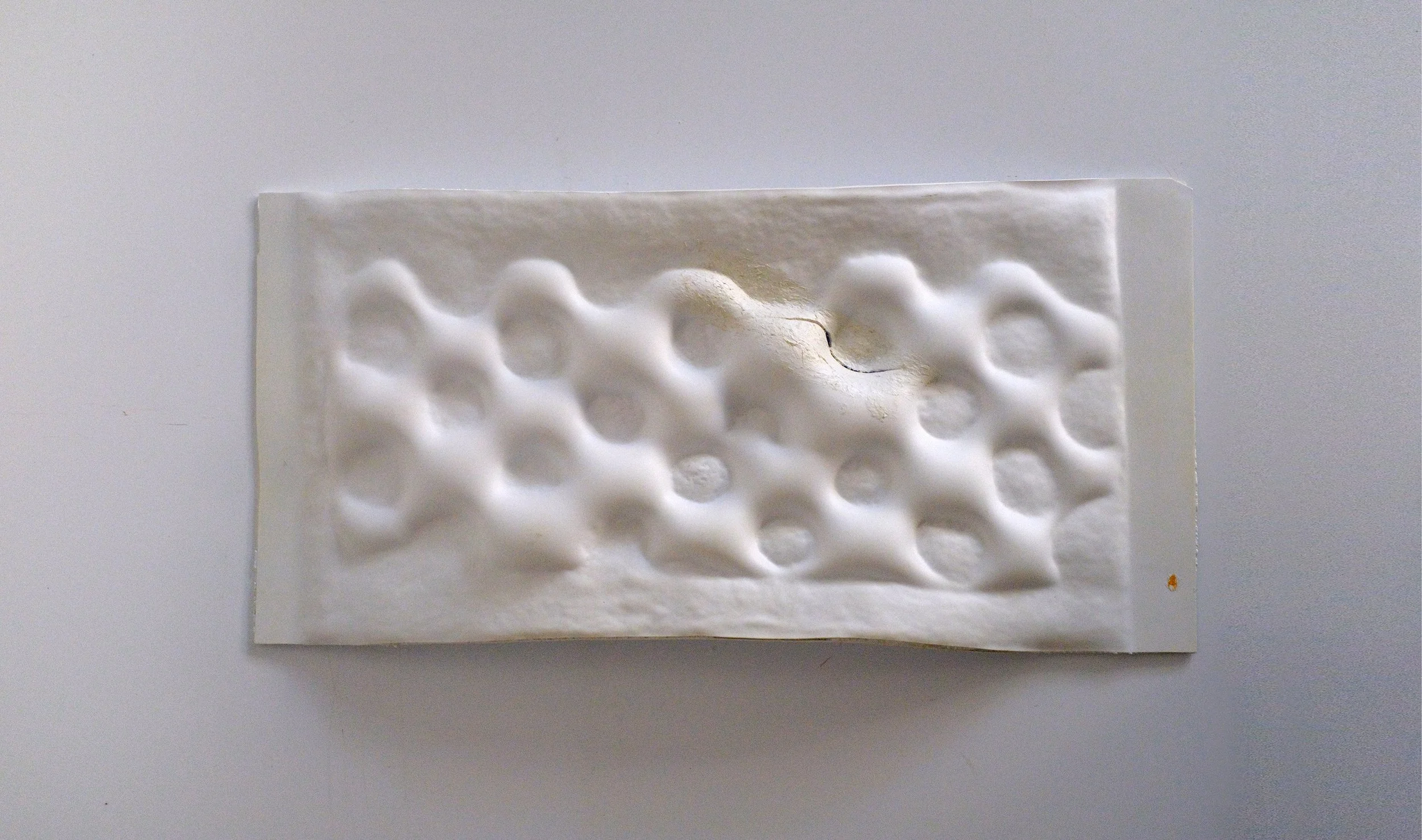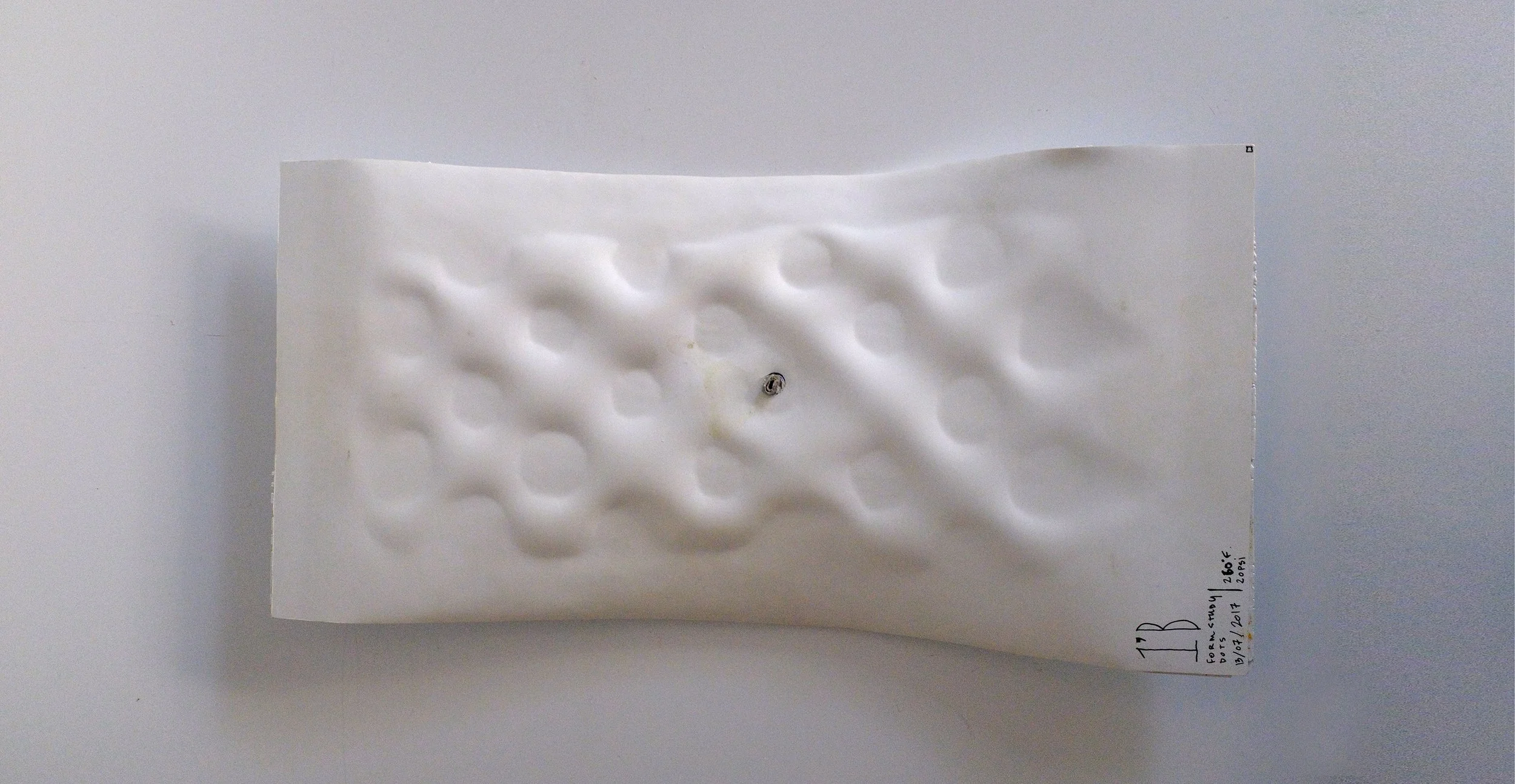 Fig 5: A different sheet test. In this case the pattern was too sparse and the sheet ballooned, weakening the assembly.